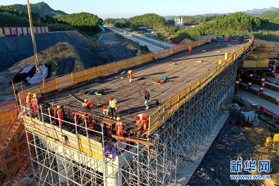 10月29日,工人在融河高速公路红岭互通施工现场作业(无人机拍摄)。 新华社记者 黄孝邦 摄
