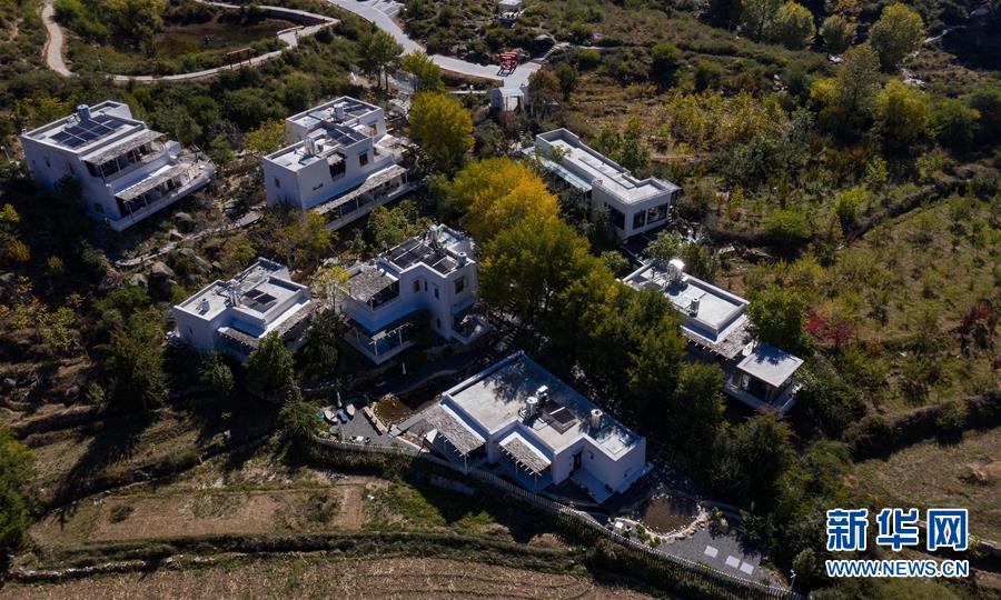 10月29日,四川省乡城县的定曲河峡谷的青德乡,民宿“皈院”错落有致,保留白藏房传统民居特色(无人机拍摄)。 新华社记者 江宏景 摄