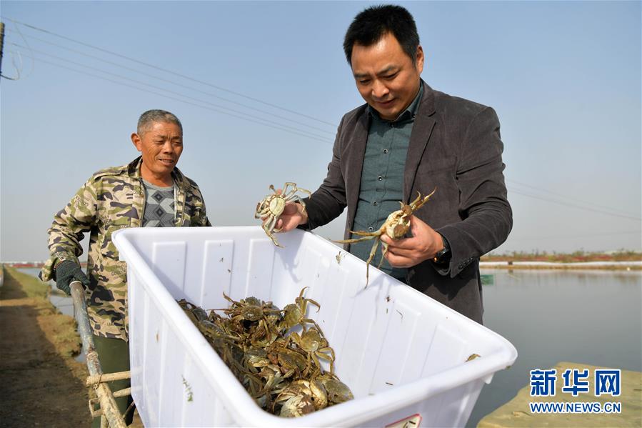 在江西省南昌市新建区象山镇河林村,顾客正在挑选今年捕获的大闸蟹(10月29日摄)。 时下正值大闸蟹收获的季节,江西省南昌市新建区象山镇河林村的村民忙着进行大闸蟹的捕捞、包装和外销工作。近年来,当地依托辖区内河道纵横、水田众多的资源优势,支持鼓励当地农村引进发展大闸蟹养殖业,目前已有大闸蟹特色养殖基地300余亩,年产值超过200万元,为当地农户开辟一条特色养殖的致富路。 新华社记者 彭昭之 摄