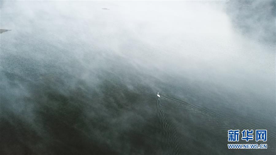 10月30日无人机拍摄的奇墅湖晨景。 安徽省黄山市黟县的奇墅湖晨雾缭绕,美如画卷。 新华社记者 张端 摄