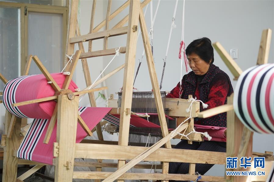 10月30日,河北省新河县刘秋口村的村民在织布。 近年来,河北省新河县以打造美丽乡村为抓手,通过转变意识,发展产业,重视生态,提升农村基层治理水平。 新华社记者 邢广利 摄