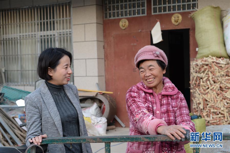 10月29日,刘双燕(左)在利辛县汝集镇朱集村走访时和村民交谈。 新华社发(黄博涵 摄)