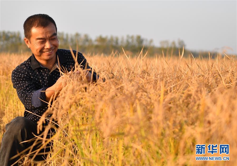 10月30日,新蔡县关津乡牛湾村的种植户在查看水稻生长情况。新华社记者李嘉南摄
