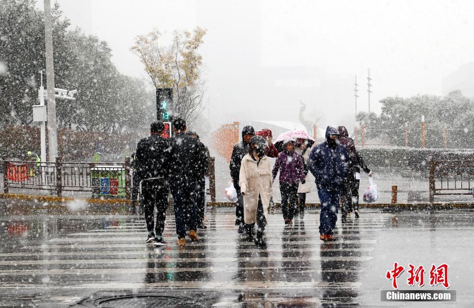 10月31日,青海大部分地区出现雨雪天气,西宁迎来深秋首场降雪。图为市民冒雪出行。中新社记者 马铭言 摄
