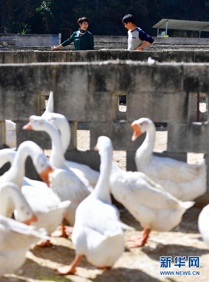 10月31日,徐丽妹(左)在养殖场给养殖户传授养殖技术。 新华社记者 魏培全 摄