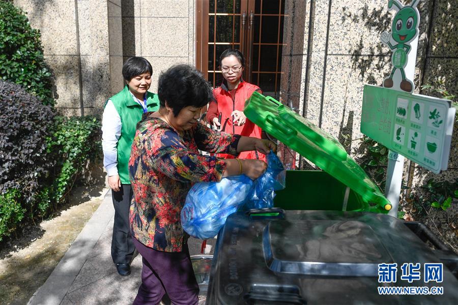 10月31日,宁波市奉化区锦屏街道的党员志愿者在一个小区的垃圾分类桶边督导居民正确地进行垃圾分类投放。据了解,锦屏街道95%以上的在职党员已向社区报到,参与垃圾分类桶边督导。 近日,浙江省宁波市奉化区以群众所需所盼作为开展“不忘初心、牢记使命”主题教育的出发点,组织广大党员领导干部到一线发现问题,及时回应民意,解决民生难题。 新华社记者 黄宗治 摄