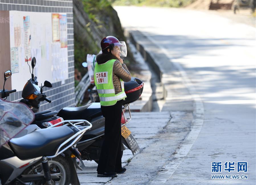 在融水苗族自治县香粉乡中坪村,驻村扶贫工作队队员石素鲜准备骑摩托车前往群众家中(10月31日摄)。石素鲜今年3月份带着摩托车来到中坪村工作。 在广西柳州市融水苗族自治县香粉乡的驻村干部队伍里,有7名女同志活跃在工作一线,被当地群众称为“七朵金花”。她们以摩托车、电动车、自行车等为代步工具,常年骑行奔走在乡间,以女性特有的温柔和细腻,在脱贫攻坚工作中发挥重要作用。 新华社记者 黄孝邦 摄