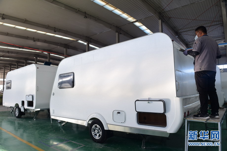 10月25日,工人正在中国--中东欧(沧州)中小企业合作区与罗马尼亚等国合作的“迷野”房车项目生产车间内作业。新华网发(傅新春 摄)