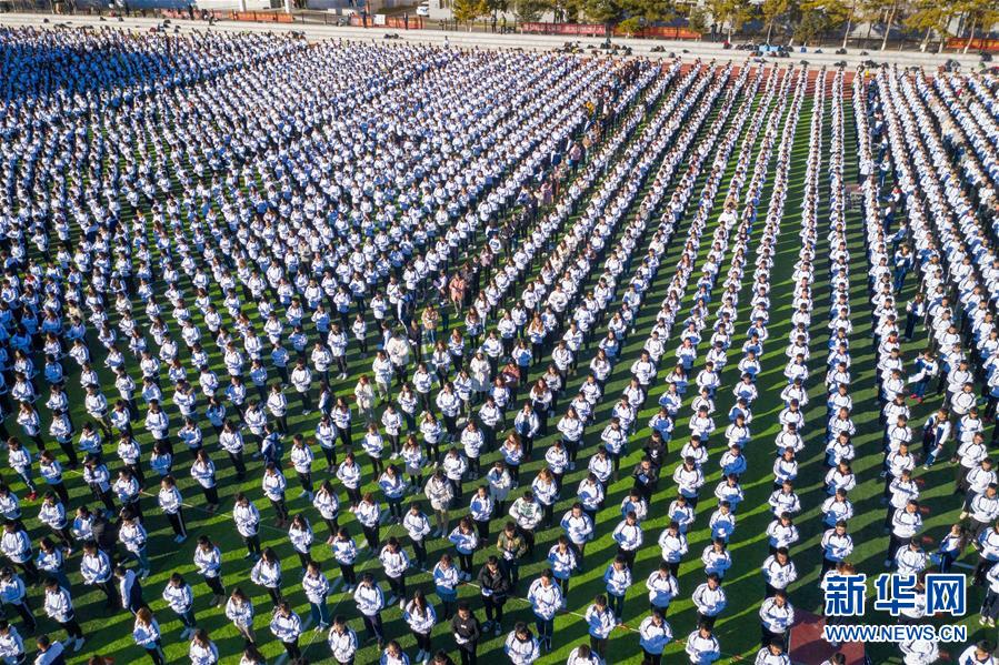 11月1日,万余名师生在长春大学操场上进行手语“合唱”活动(无人机拍摄)。新华社记者 张楠 摄