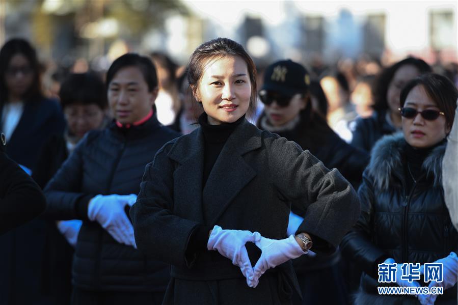 11月1日,长春大学教师们在操场上进行手语“合唱”活动。新华社记者 张楠 摄
