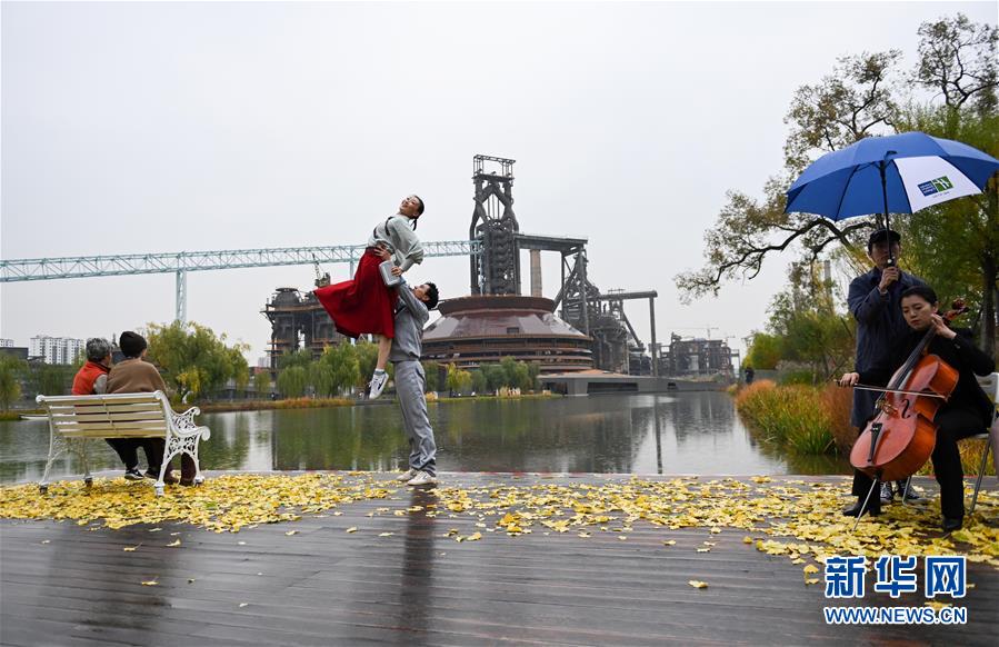 11月2日,参演舞蹈者在首钢园内表演舞蹈《旅梦人》。 新华社记者 陈晔华 摄