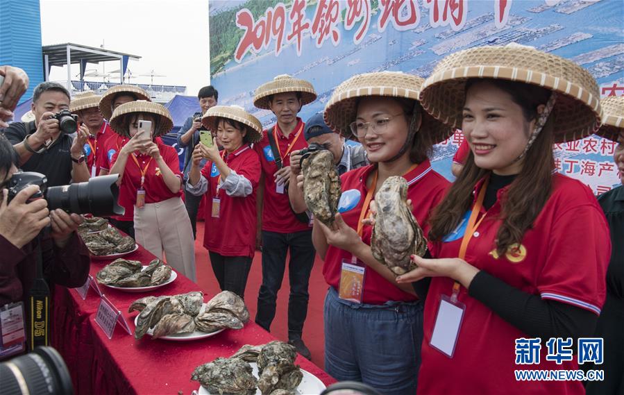 11月2日,蚝农在钦州市蚝情节上展示大蚝。 新华社记者 陶明 摄