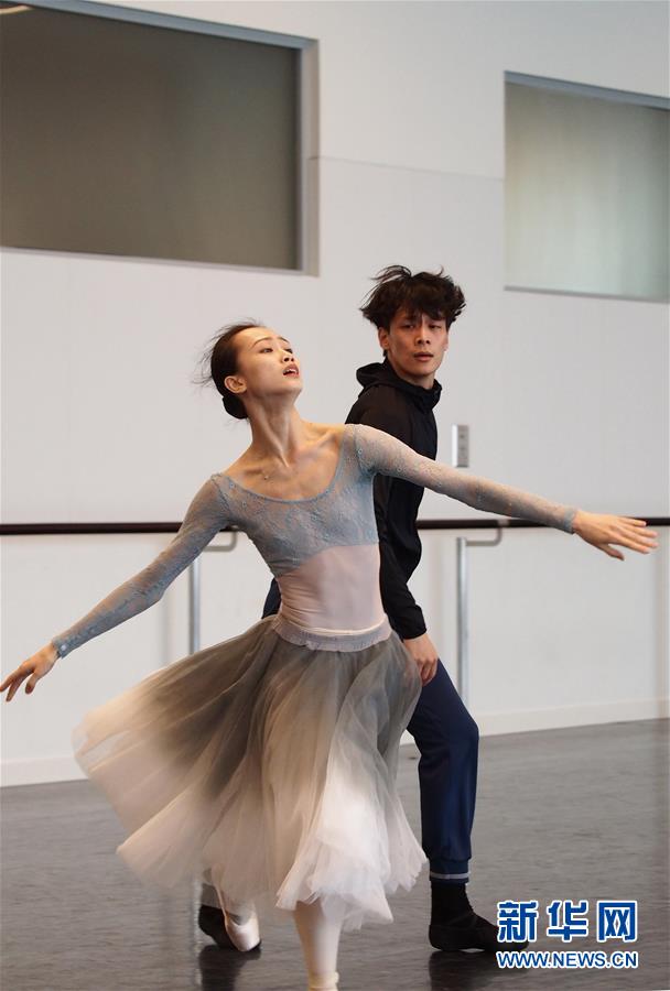11月2日,上海芭蕾舞团首席明星吴虎生(后)和主演戚冰雪在排练厅排练上芭版芭蕾舞剧《茶花女》。 新华社记者 任珑 摄