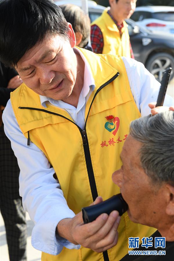11月2日,枫桥镇义工联合会的志愿者在枫桥镇陈家社区为群众刮胡子。新华社记者 翁忻旸 摄