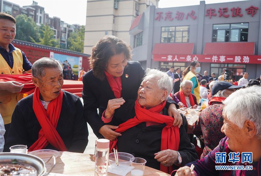 11月2日,南京仙林街道党工委书记孙金娣(前左二)在千家宴上给老人们戴上围巾,送上祝福。 11月2日至3日,江苏南京仙林街道仙林新村社区举办“一家亲”千家宴活动。在社区精心准备的基础上,居民们带上自己的拿手菜,欢聚一堂,其乐融融。仙林新村是一处拆迁安置房小区,多年来,社区通过网格化管理等方式,鼓励和引导居民开展自治,形成了良好的社区邻里关系。 新华社记者 季春鹏 摄