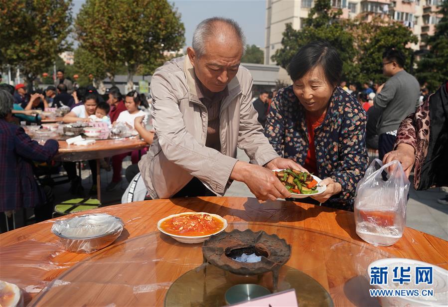 11月2日,南京仙林街道仙林新村社区居民钱序仁(左)和吕桂英带上自己做的菜前来赴宴。 11月2日至3日,江苏南京仙林街道仙林新村社区举办“一家亲”千家宴活动。在社区精心准备的基础上,居民们带上自己的拿手菜,欢聚一堂,其乐融融。仙林新村是一处拆迁安置房小区,多年来,社区通过网格化管理等方式,鼓励和引导居民开展自治,形成了良好的社区邻里关系。 新华社记者 季春鹏 摄