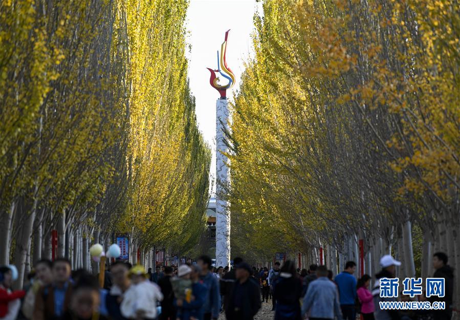 市民在银川市凤凰公园欣赏秋景(10月26日摄)。新华社记者 冯开华 摄