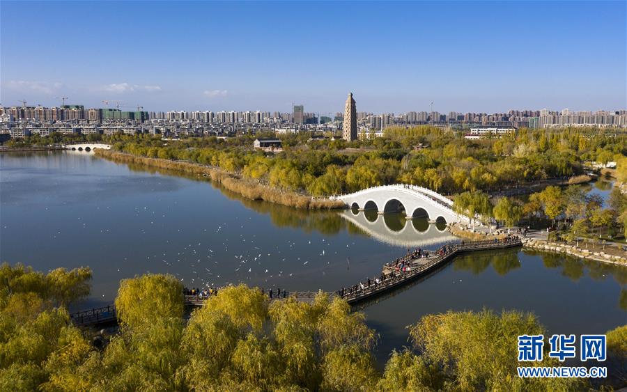 这是11月2日无人机拍摄的银川市海宝公园秋景。新华社记者 冯开华 摄