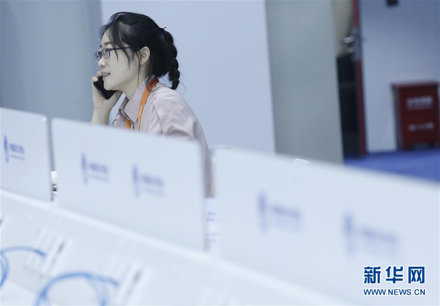 11月4日,媒体记者在新闻中心工作。第二届中国国际进口博览会新闻中心于11月4日至10日开放。新华社记者 张玉薇 摄