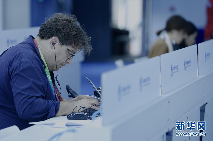11月4日,媒体记者在新闻中心工作。第二届中国国际进口博览会新闻中心于11月4日至10日开放。新华社记者 张玉薇 摄