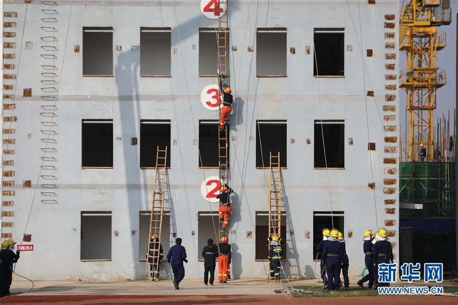 11月5日,在“消防宣传月”启动仪式上,消防人员在进行突击救援演练。 当日,河北省衡水市消防支队举行“119消防宣传月”启动仪式,演练内容包括火场灭火、障碍救援等。 新华社记者 朱旭东 摄
