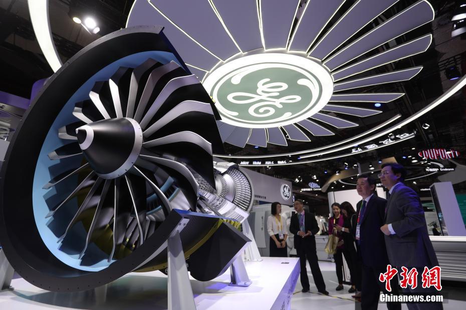 11月5日,第二届进博会在国家会展中心(上海)开幕,通用电气带来的新型涡扇发动机亮相展会。中新社记者 张亨伟 摄