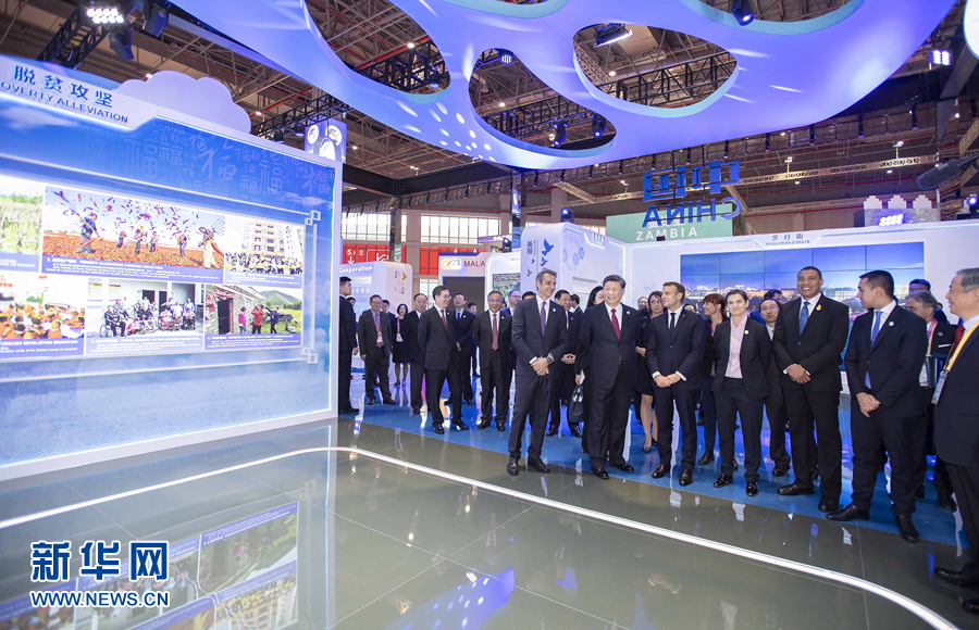 习近平同出席第二届中国国际进口博览会的外国领导人共同巡馆