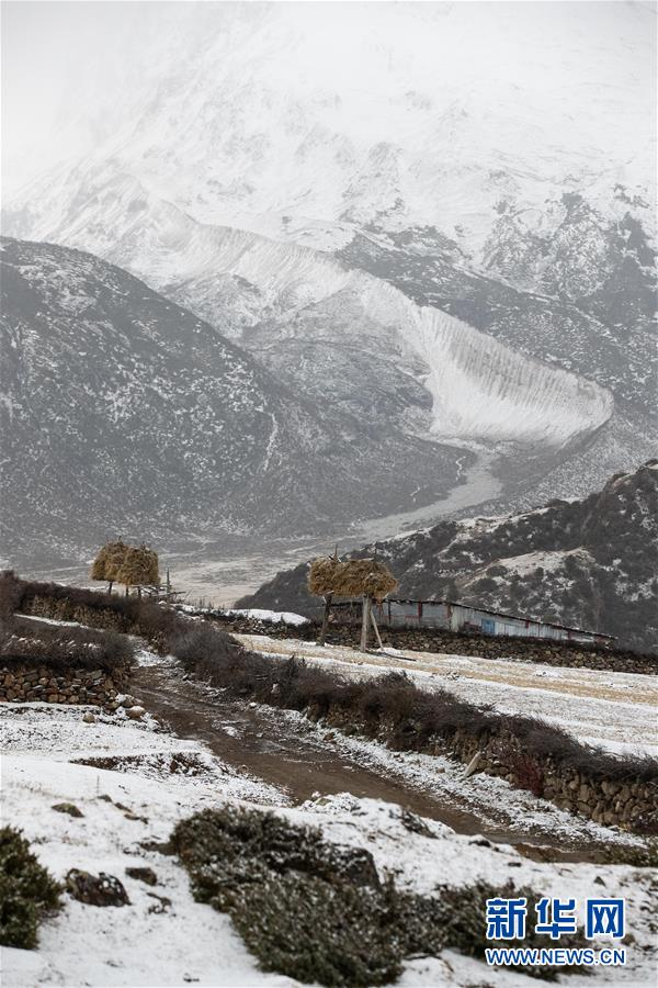 八宿县然乌镇来古冰川初雪(10月24日摄)。新华社记者 江宏景 摄
