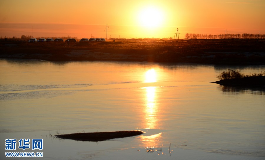 11月5日,几辆汽车从大庆市郊的一个湖泊旁驶过。初冬时节,黑龙江多地尚未冰封雪飘,江湖湿地笼罩在暮色暖光之中宛若春华。新华网 杜文杰摄
