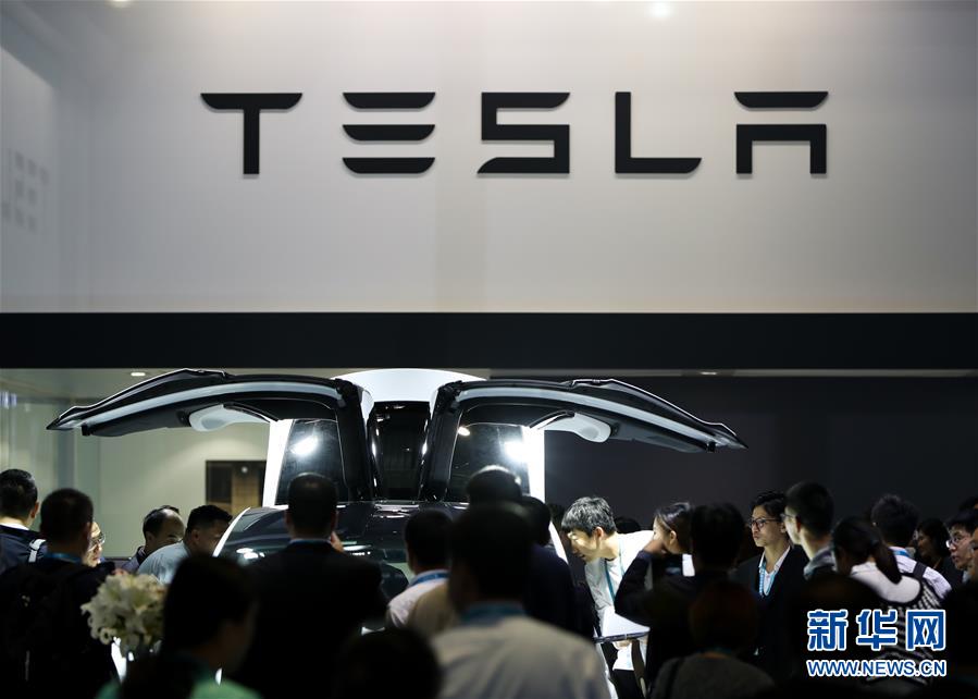 11月6日,在进博会汽车展区,人们在特斯拉展台参观特斯拉MODEL X汽车。 当日是第二届中国国际进口博览会开幕第二天,上海国家会展中心迎来首个“大客流”。 新华社记者 丁汀 摄