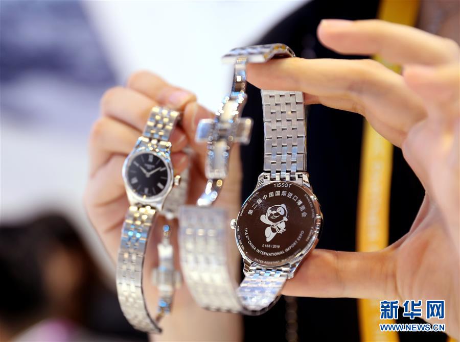 11月6日,在进博会品质生活展区,一家瑞士手表品牌的工作人员展示为第二届进博会打造的限量版腕表。 当日是第二届中国国际进口博览会开幕第二天,上海国家会展中心迎来首个“大客流”。 新华社记者 刘颖 摄