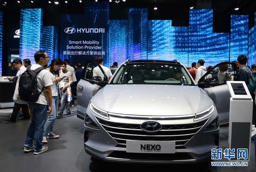11月6日,人们在汽车展区韩国现代汽车展台参观一辆氢能源燃料汽车。 当日是第二届中国国际进口博览会开幕第二天,上海国家会展中心迎来首个“大客流”。 新华社记者刘昀摄