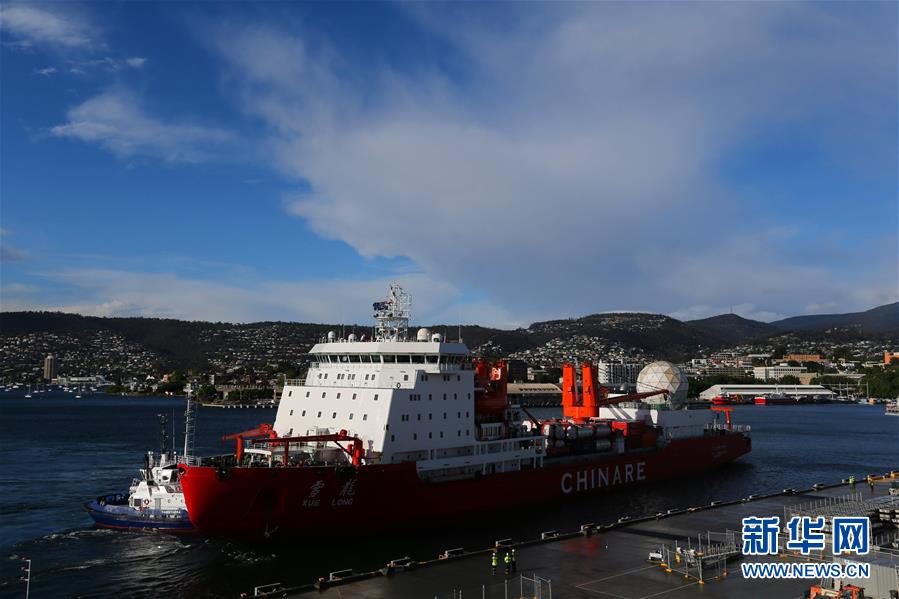 11月7日,“雪龙”号正在向霍巴特港停靠。新华社记者 刘诗平摄