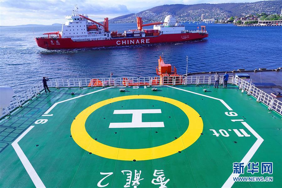 11月7日,“雪龙”号与“雪龙2”号顺利“会师”。新华社记者 刘诗平摄