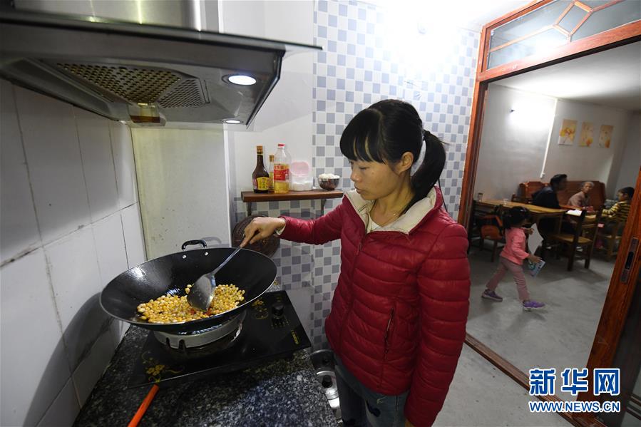 在广西罗城易地扶贫搬迁仫佬家园安置区的家中,吴才忠的爱人庞水娣在炒菜(11月6日摄)。 一家人住上县城的新房子,夫妻二人在小区旁上班,小孩在县城上学——现年36岁的仫佬族青年吴才忠一家,过上了易地扶贫搬迁户的新生活。 吴才忠是广西罗城易地扶贫搬迁仫佬家园安置区的搬迁住户,来这里之前,他家住在罗城仫佬族自治县四把镇棉花村下岩屯。那里生产生活条件恶劣,交通不便,石漠化严重,就地发展生产困难。 罗城仫佬族自治县在脱贫攻坚中,建设4个易地扶贫搬迁安置区。2018年6月,吴才忠一家5口告别老家的破旧瓦房,搬到位于县城的罗城易地扶贫搬迁仫佬家园安置区。这个安置区集移民安置住宅、仫佬风情商业街、农村电商中心、农贸市场、学校、医院、民族产业园等于一体,共安置1915户8931人。 不仅住上了100平方米的新房子,吴才忠和爱人庞水娣还被安排在安置区旁边的广西罗城松声电子科技有限公司就近就业,儿子在附近学校就读。“感谢易地扶贫搬迁政策,我们才有了现在的幸福生活。”庞水娣说。 新华社记者陆波岸摄