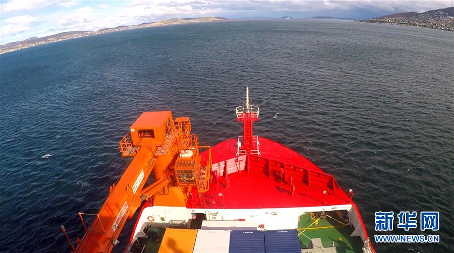11月7日,“雪龙2”号离开霍巴特港准备穿越西风带。 当日,搭载着中国第36次南极科学考察队队员的“雪龙2”号极地科考破冰船与“雪龙”号进行短暂相聚后,离开澳大利亚霍巴特港,将穿越“咆哮西风带”。 新华社记者 刘诗平 摄