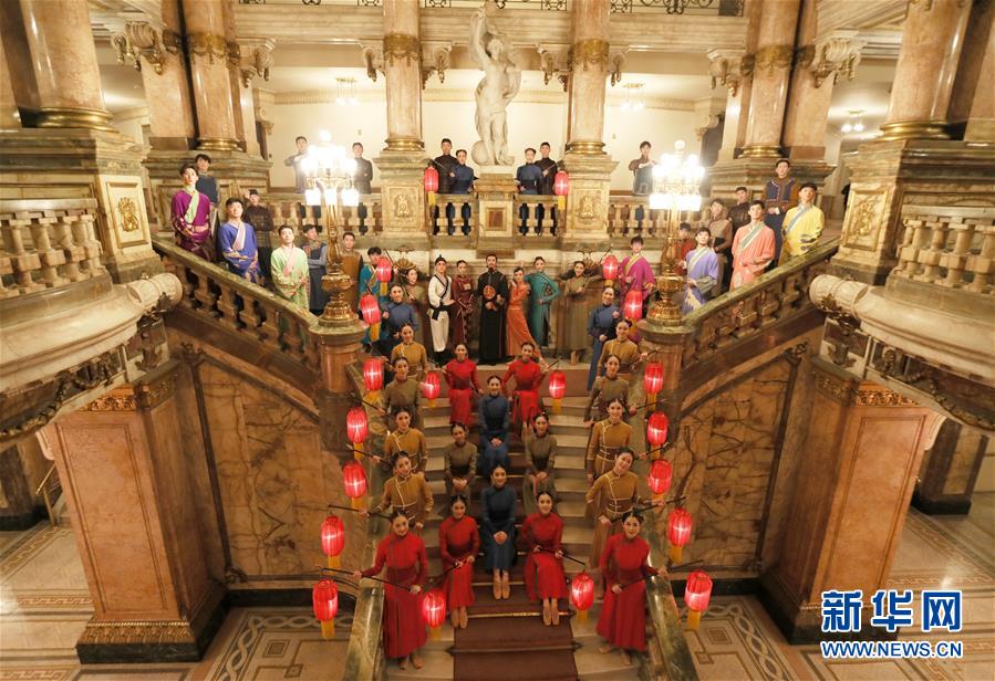 2019年5月23日,在巴西里约热内卢,中央芭蕾舞团的演员们在有110年历史的里约热内卢市政剧院合影。 新华社发(刘宇摄)