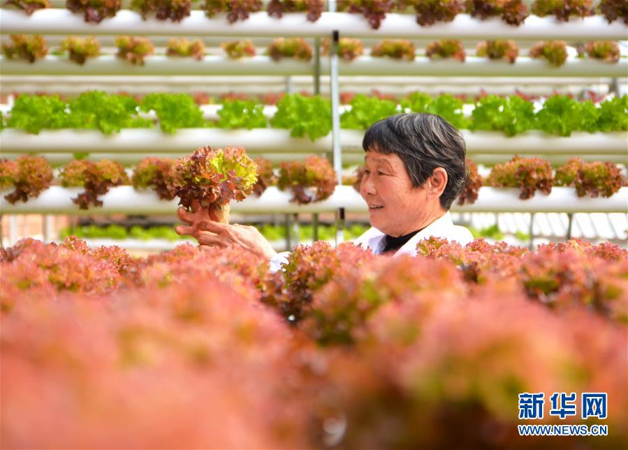 11月8日,村民在成安县一家农业科技示范园大棚内打理无土栽培的蔬菜。 近年来,河北省邯郸市成安县积极发展现代农业,通过引进无土栽培技术,发展有机蔬菜种植,辐射带动当地农民在家门口就业致富。 新华社记者 王晓 摄