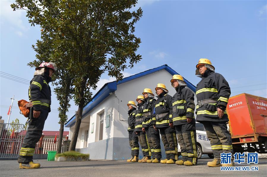 在江西省萍乡市湘东区下埠镇木马村,木马村志愿消防服务队的队员们在进行日常训练(11月8日摄)。新华社记者 彭昭之 摄