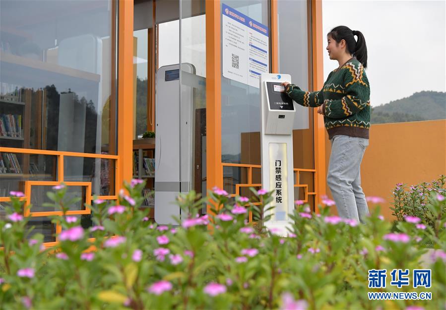 在江西省萍乡市湘东区,一位女士在“书香驿站”刷身份证进入(11月7日摄)。 为进一步完善公共文化服务体系,丰富城市阅读服务体系,构建“15分钟阅读文化圈”,近日,江西省萍乡市湘东区24小时自助城市书屋“书香驿站”面向市民和游客开放。 书屋内配有图书4000余册,涵盖经典文学、名人传记、自然科学等类别,可满足不同年龄段读者的需求,同时可在书屋内举办主题读书活动、文化沙龙等。市民可凭借身份证或读者证入内,实现办证、借阅、续借、还书等全自助功能。 新华社记者 彭昭之 摄
