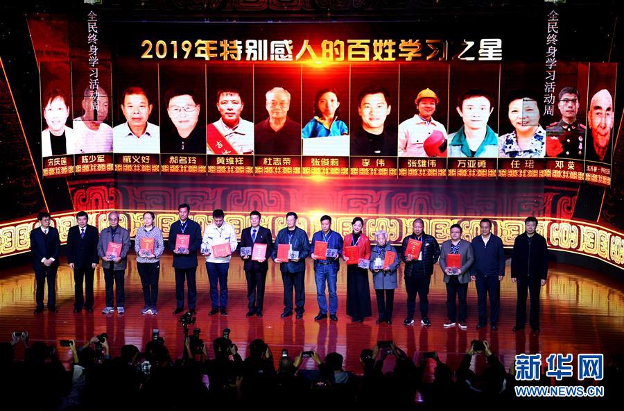 11月8日,2019年特别感人的百姓学习之星在开幕式上合影。 当日,2019年全民终身学习活动周全国总开幕式在河南省郑州市五十四中学举行。本届活动周以“推动全民终身学习,加快建设学习大国”为主题。 新华社发(郝源 摄)