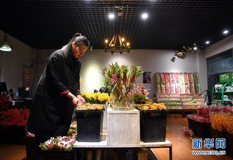 臧晶晶在河南郑州小马进口鲜花店整理郁金香(11月7日摄)。新华社记者李嘉南摄