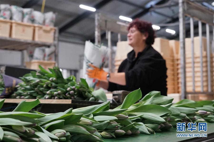 在荷兰特里弗洛尔农场,花农在包装郁金香鲜花(11月4日摄)。新华社记者林立平摄
