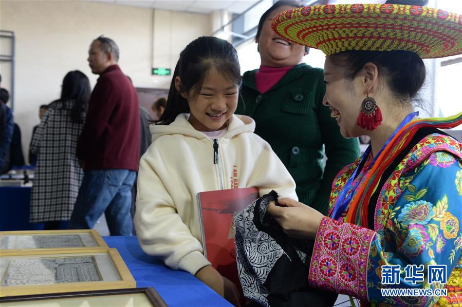11月9日,一名小朋友在参观瑶族花瑶挑花技艺。 当日,第四届湘鄂赣皖四省非遗联展在安徽省宣城市宛陵湖文化广场举办。展览设置“锦绣潇湘”“漆艺荆楚”“瓷韵赣鄱”和“文房江淮”展区,共展出52个非遗项目,其中国家级非遗项目26个,吸引大批市民前来参观。 新华社发(黄博涵摄)