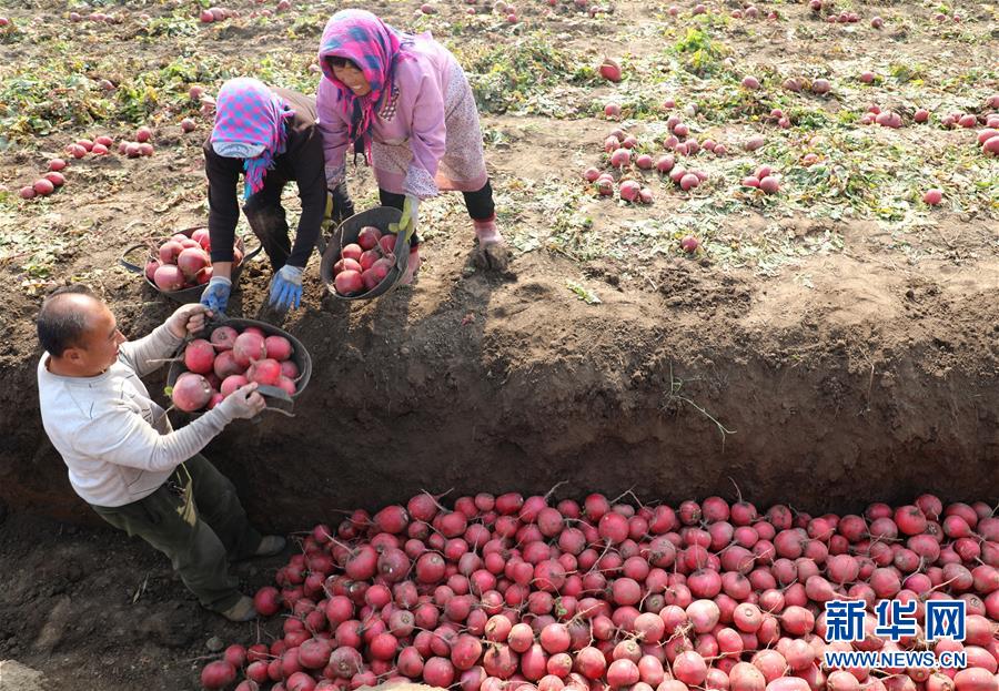 11月9日,河北省唐山市丰润区白官屯镇郭官屯村农民将萝卜入窖储存。 新华社记者 牟宇 摄