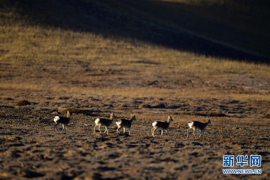 11月9日,一群藏原羚在青海玛沁县境内的草原上活动。新华社记者 张龙 摄