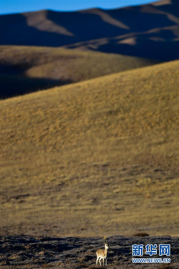 11月9日,一只藏原羚在青海玛沁县境内的草原上活动。新华社记者 张龙 摄