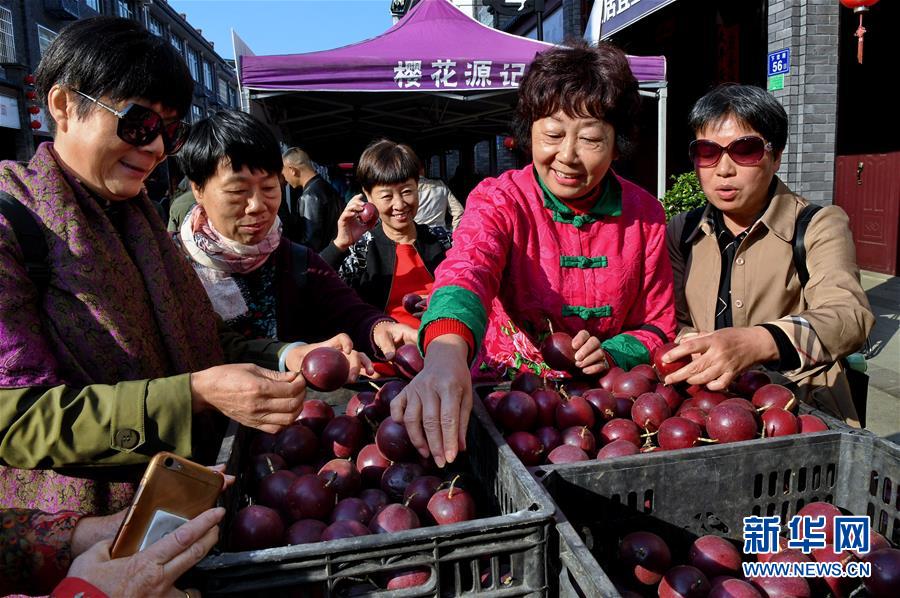 11月9日,人们在邵武市卫闽镇举办的农民丰收节上选购百香果。