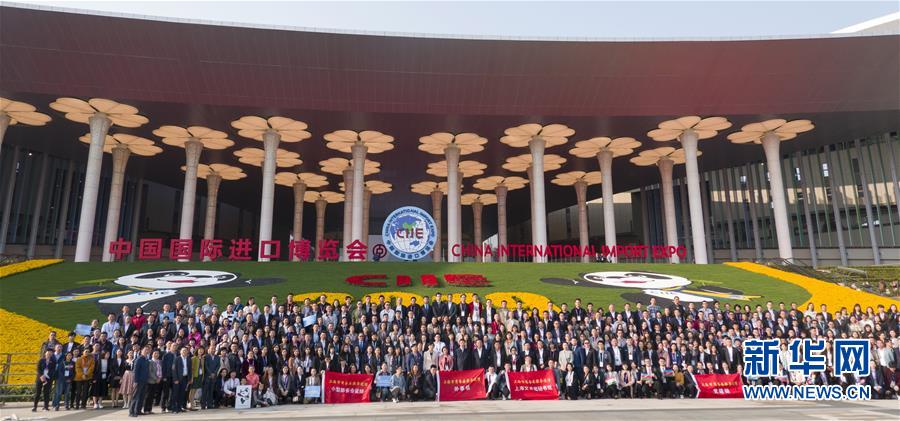 11月10日,在上海国家会展中心南广场,第二届进博会部分工作人员合影留念。 在上海国家会展中心举行的第二届中国国际进口博览会10日闭幕。 新华社记者 才扬 摄