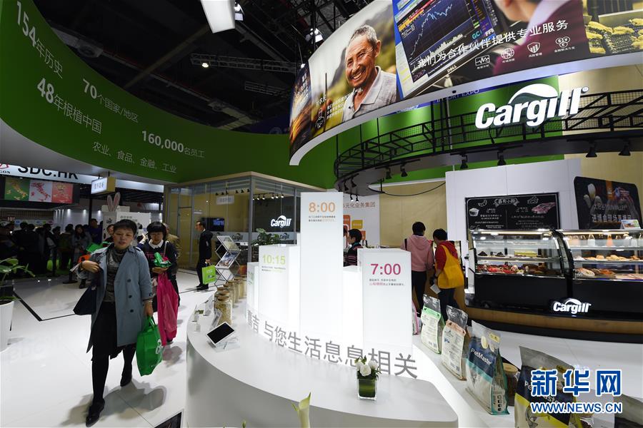 11月10日,在第二届进博会食品及农产品展区,参观者在美国嘉吉公司展台参观。 新华社记者 范培珅 摄